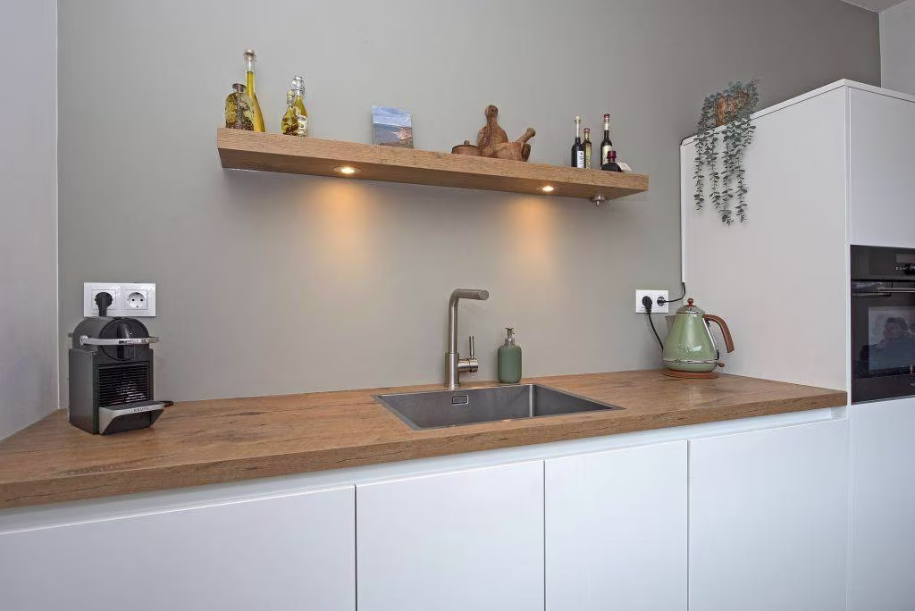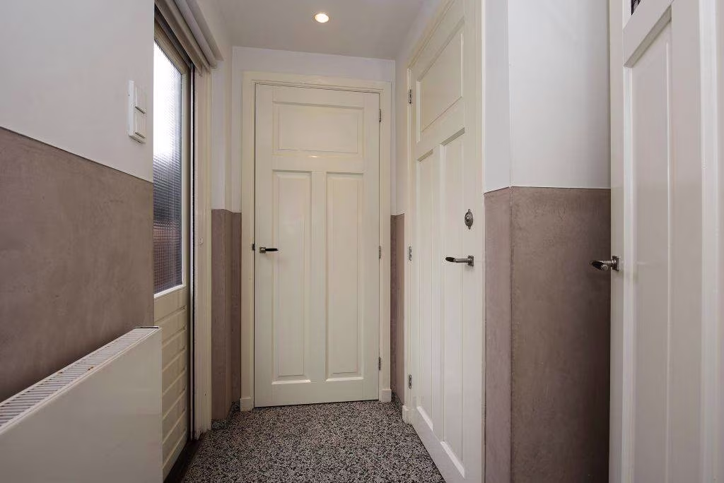 Aan de achterzijde vind je een beschutte tuin waar je in alle rust kunt zitten. Of je nu ’s ochtends de dag start met een kop koffie in de zon of ’s avonds nog even nageniet van een lange werkdag, hier heb je je eigen plek buiten.