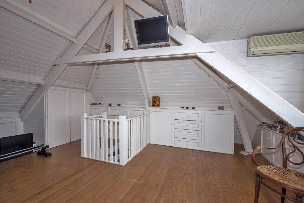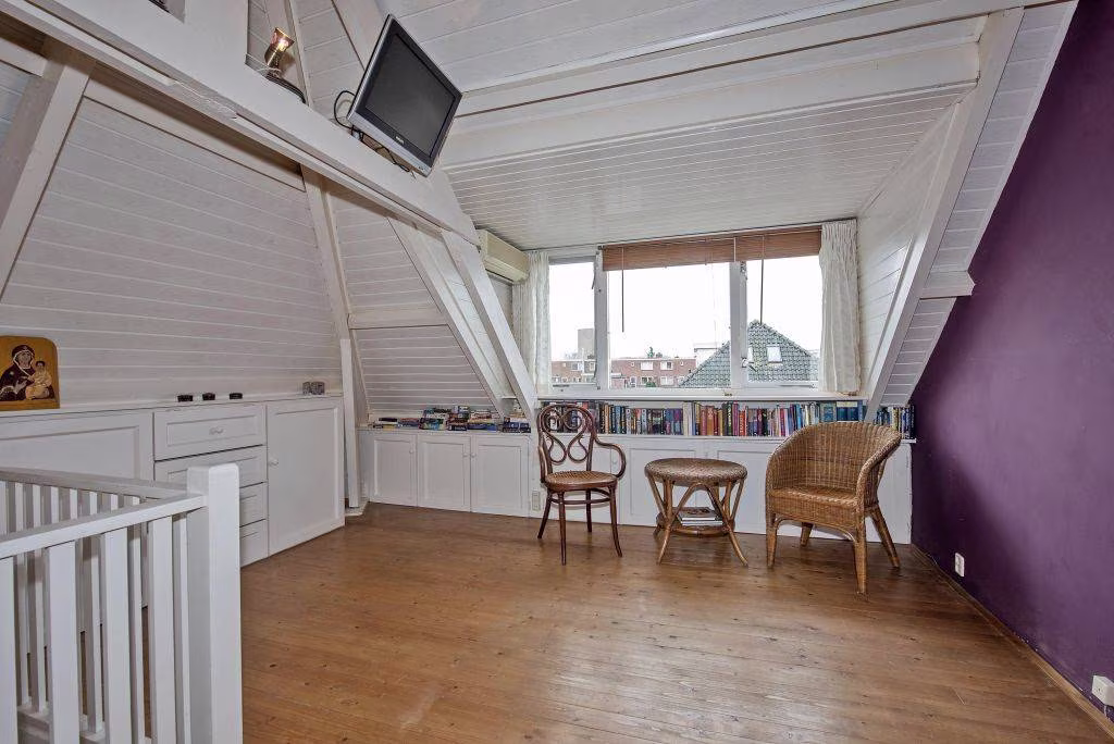 De tweede verdieping is bereikbaar via een vaste trap en biedt een volwaardige extra kamer met meerdere vaste kasten. Ideaal als werkruimte of logeerkamer.