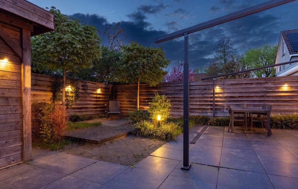 Via de tuindeuren stap je zo naar buiten, waar een fraai aangelegde tuin op het westen op je wacht. Een royaal terras en een elektrisch bedienbaar uitvalscherm maken dit de perfecte plek om lange zomeravonden door te brengen. Hier geniet je van rust, zon en het buitenleven.