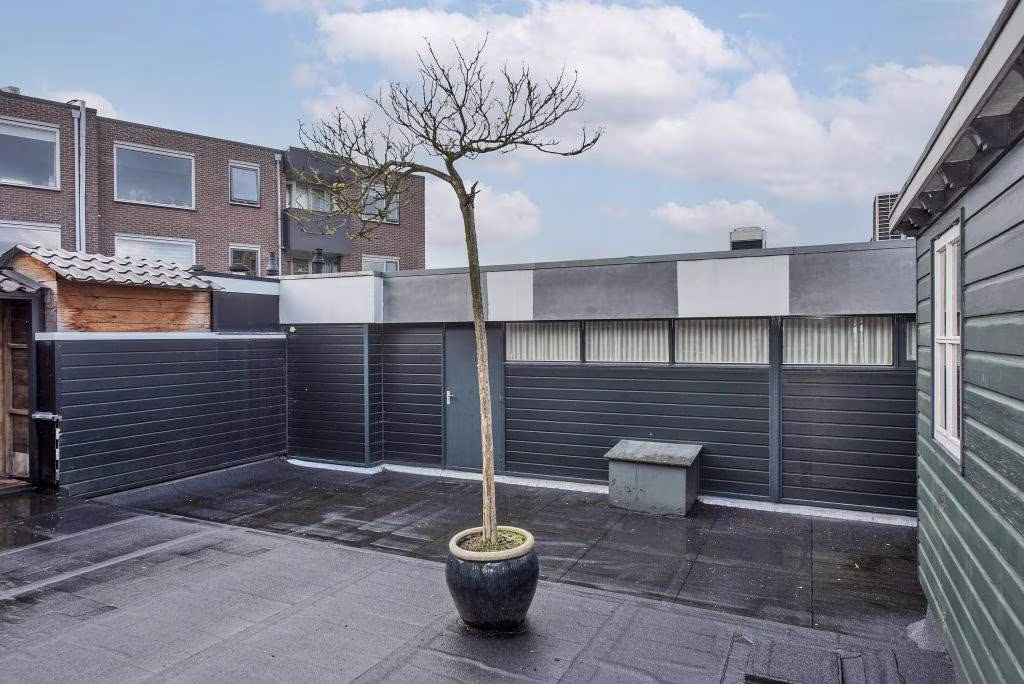 Via je eigen entree kom je in een lichte woonverdieping met een fijne en ruime living, een eetkamer en halfopen keuken. En het pronkstuk? Het royale dakterras: een privé-plek voor je eerste kop koffie, lange borrels met vrienden of gewoon even niets — met volop plaats voor een lounge, eettafel en groen.