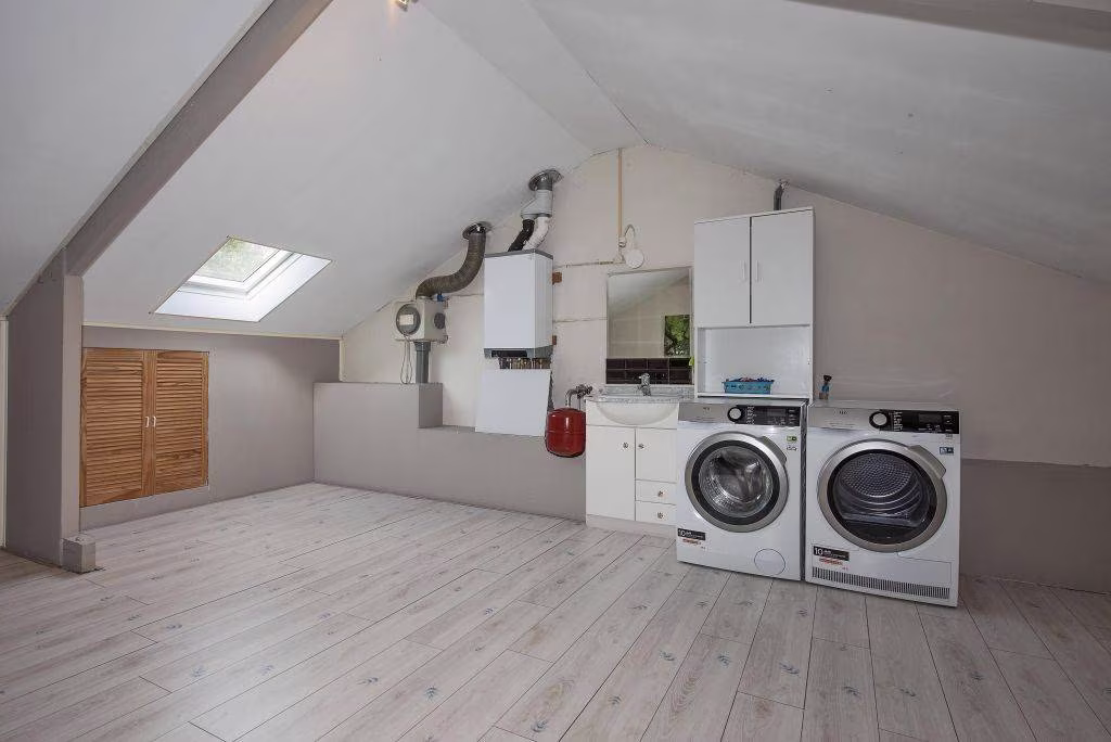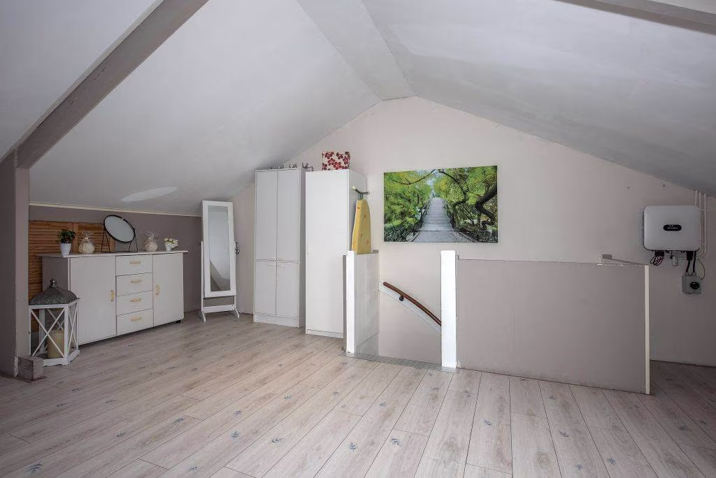 Tweede verdieping: via vaste trap bereikbaar, ruime zolder te gebruiken als vierde slaapkamer of thuiswerkplek.