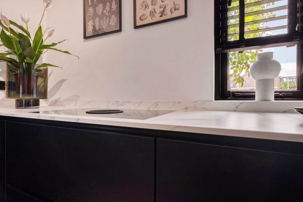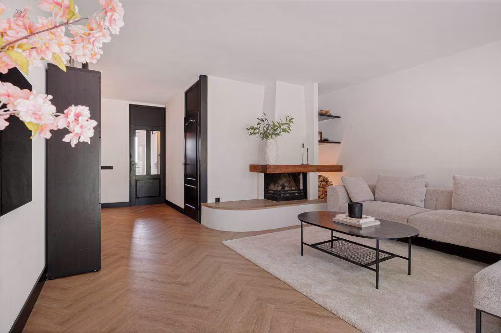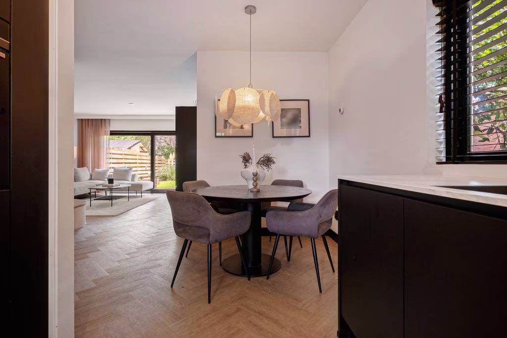 Bij binnenkomst valt direct de lichte en royale woonkamer op, voorzien van een schuifpui naar de tuin. De sfeervolle gaskachel met open haard geeft de ruimte een warme uitstraling. In 2021 is een moderne keuken geplaatst, uitgerust met een inductiekookplaat met Bora ingebouwde afzuiging. Bovendien is op de gehele begane grond vloerverwarming aangebracht en zijn de vloeren vernieuwd.