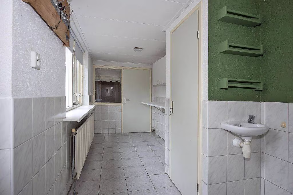 Vanuit de bijkeuken heb je toegang tot de garage met berging en werkplaats. Deze multifunctionele ruimte is voorzien van een lichtkoepel, waardoor er prettig daglicht binnenvalt. Ideaal voor hobby, kluswerk of als extra bergruimte.